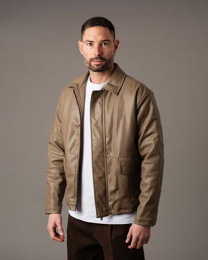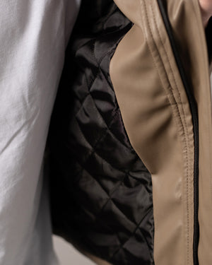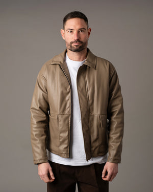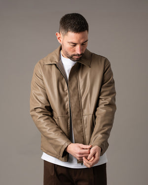 Giubbotto realizzato in ecopelle morbida, dalla finitura liscia e leggermente satinata, pensata per un look pulito e contemporaneo.