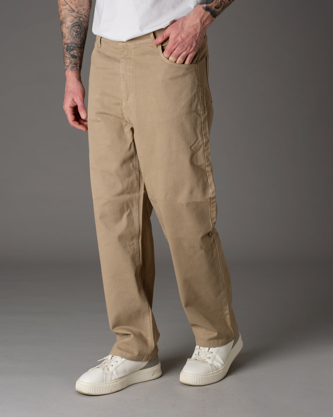 Il colore beige lo rende estremamente versatile: perfetto con t-shirt minimal, overshirt, felpe o camicie più strutturate. Un capo facile da costruire, difficile da sostituire.