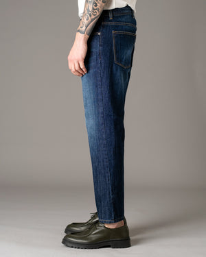 Il denim presenta leggere sfumature naturali che donano profondità e carattere, mantenendo un’estetica equilibrata e moderna.