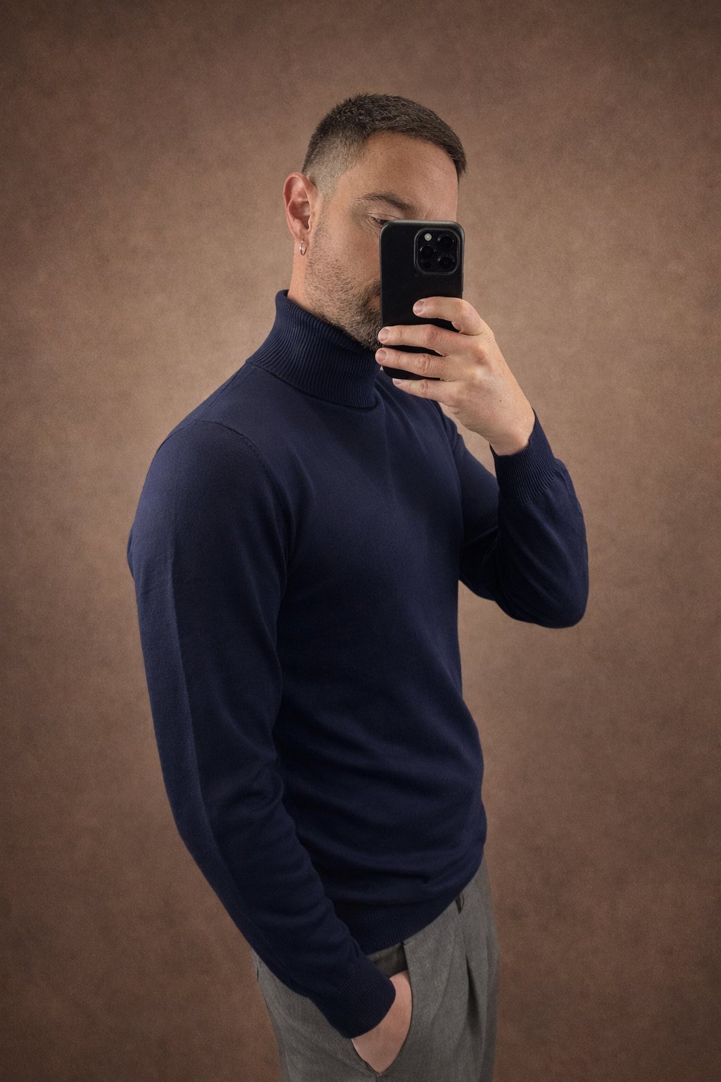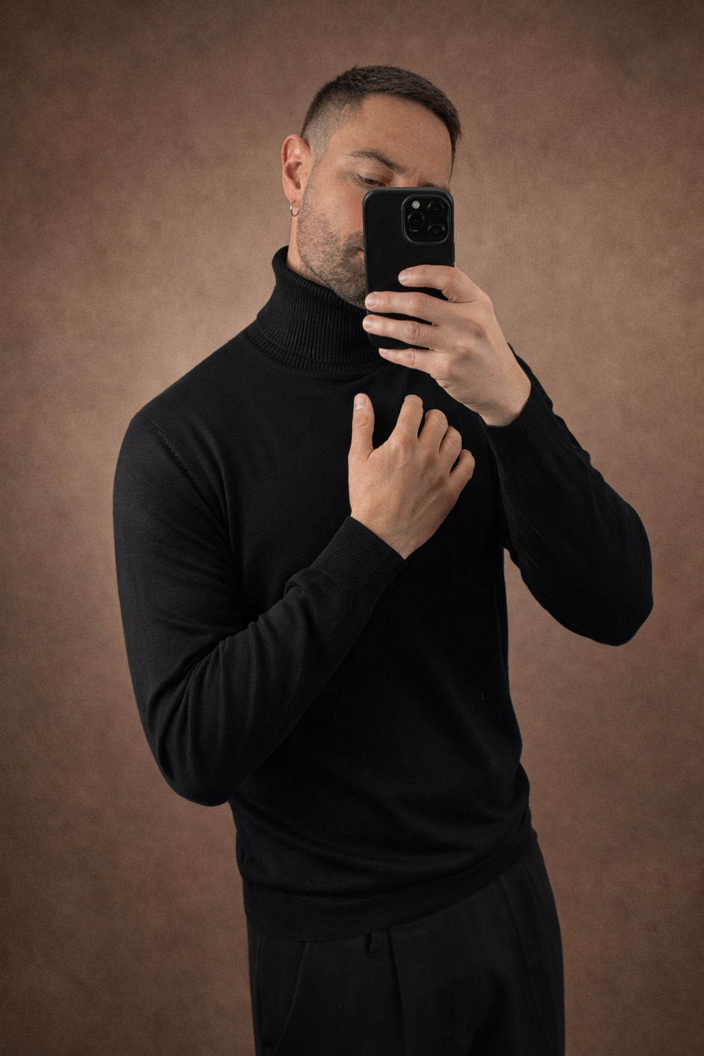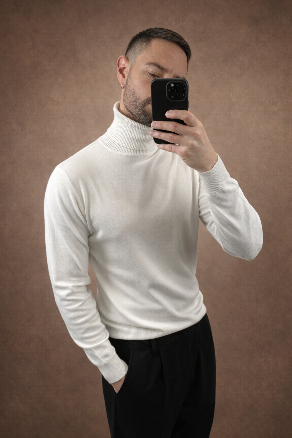 Essenziale, elegante, senza tempo. Questa maglia dolcevita è un capo chiave del guardaroba maschile moderno: minimale nell’estetica, forte nella resa. Il tessuto in maglia fine è morbido sulla pelle e garantisce comfort per tutta la giornata. Il collo alto struttura il look senza appesantire,rendendola ideale sia sotto giacche e cappotti, sia indossata da sola. Il fit è regolare, pulito, studiato per valorizzare la figura senza risultare aderente.
