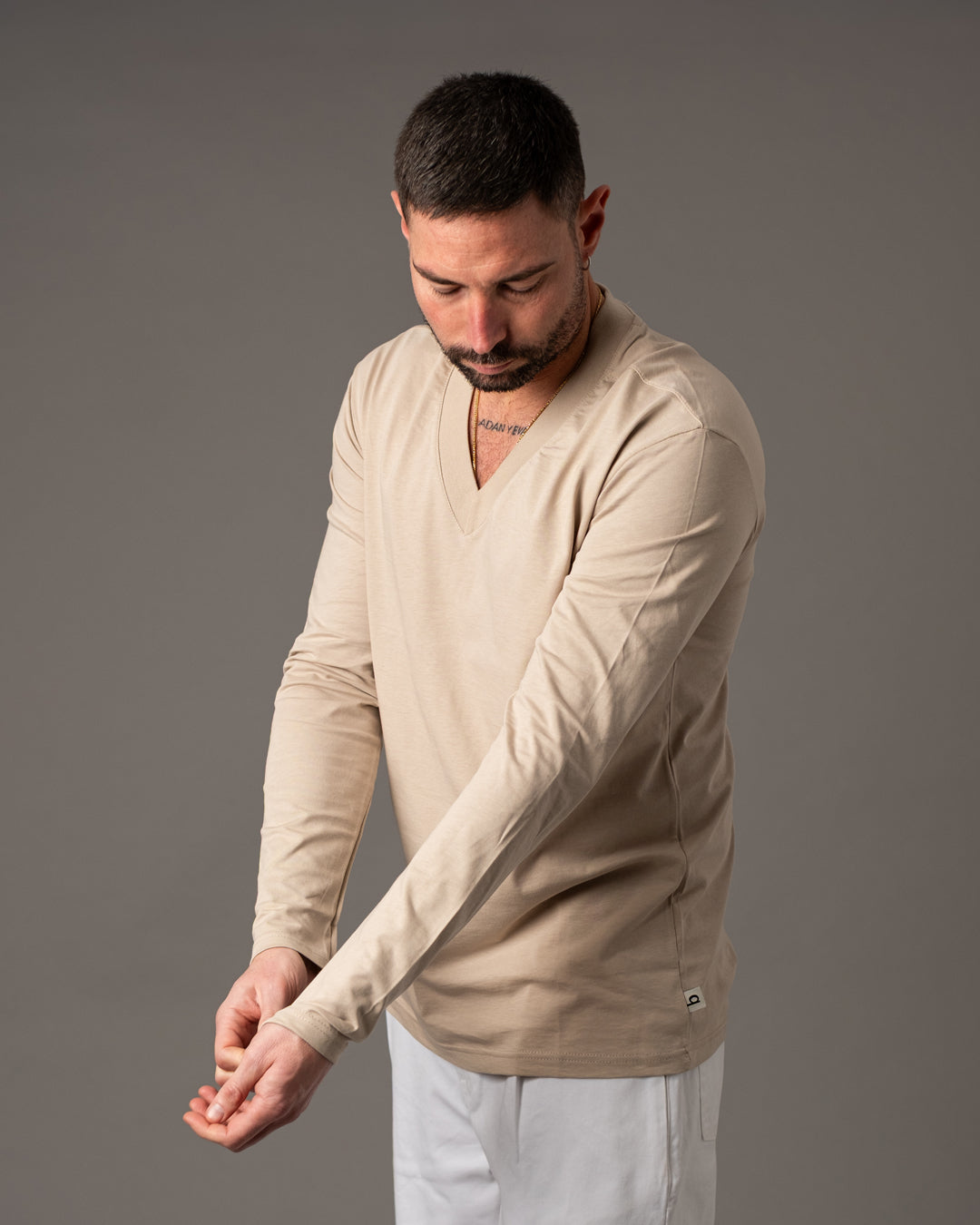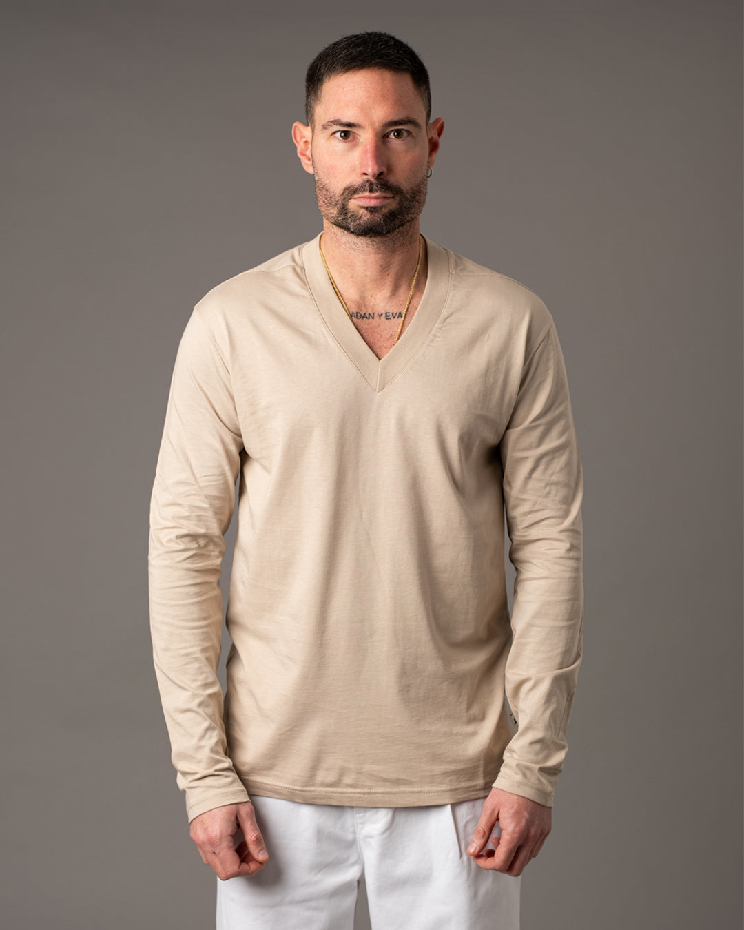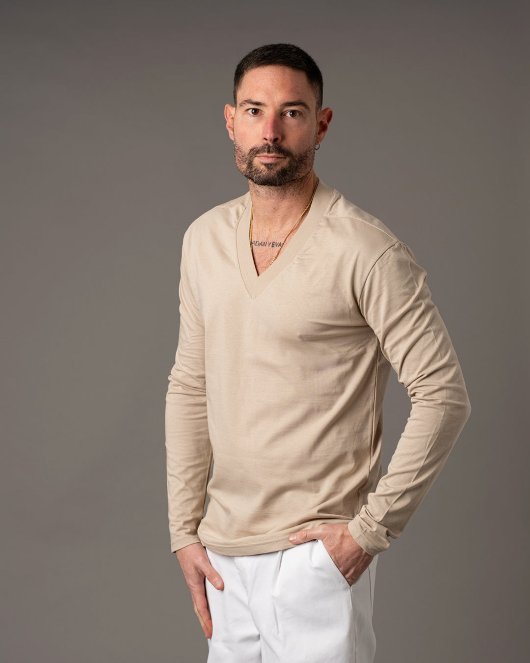 Lo scollo a V dona al capo un’estetica pulita ed elegante, valorizzando la linea del collo con discrezione.